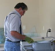 Student in fused glass workshop is working on