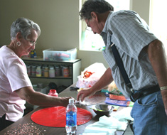 Students in fused glass workshop are discussing